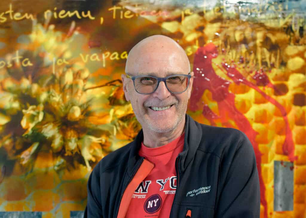 Harri Larjosto tarhasi mehiläisiä vuosina 2017–2021. Seuraavina vuosina syntyi resilienssi-kollaaseja, jotka tutkivat ihmisen luonto- ja eläinsuhdetta mehiläistenhoidon valossa. Ikimetsägalleriassa esillä olevat sekatekniikkateokset, valokuvat ja maalaukset liittyvät sisällöltään mehiläishoitoon ja resilienssiin, kriisinkestävyyteen. Teosten tekstiaineisto laajentaa ilmaisua aforistiseen, kielelliseen suuntaan.