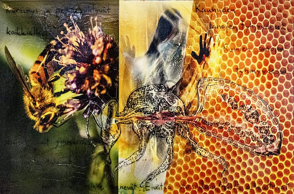 Resilienssi, mehiläiskuvia -näyttelykokonaisuus tutkii ihmisen luonto- ja eläinsuhdetta. Heinäkuun ensimmäisellä viikolla avautunut näyttely on esillä elokuun 7. päivään saakka.