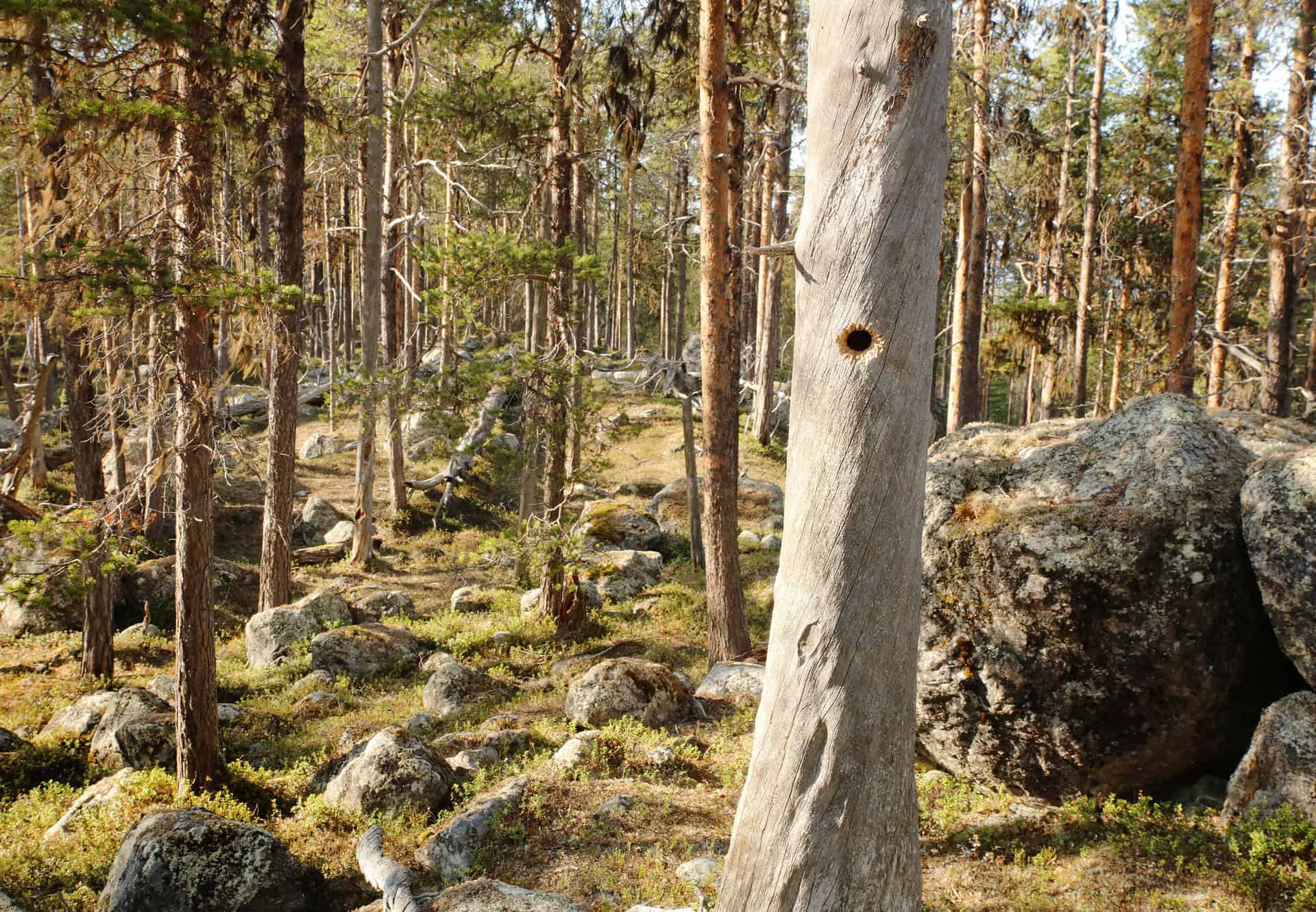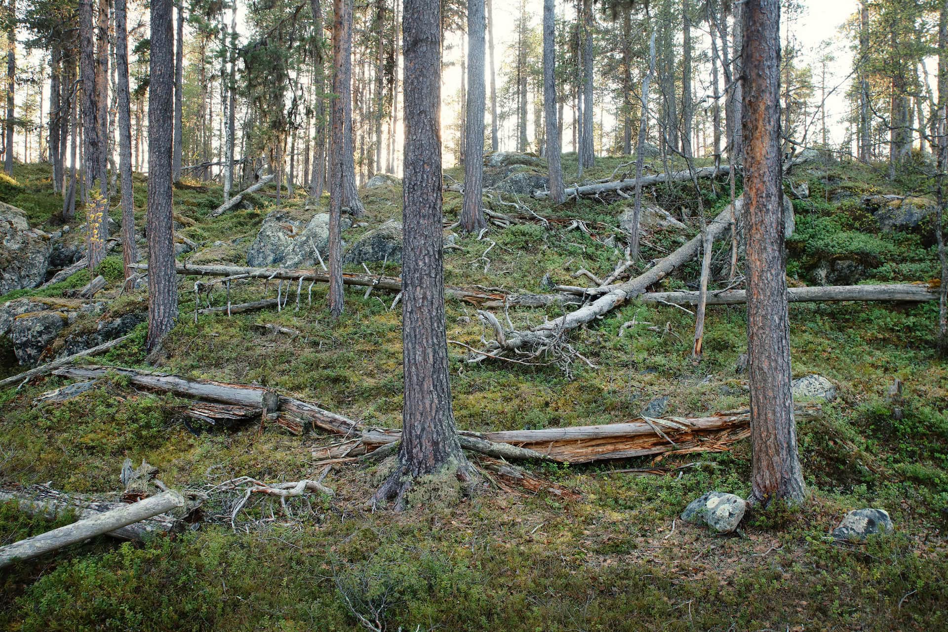 Nellimissä sijaitseva lohkareisia kangasmaita, parisataavuotiaita petäjiä ja maahan kaatuneita keloja sisältävä luonnonmetsä.