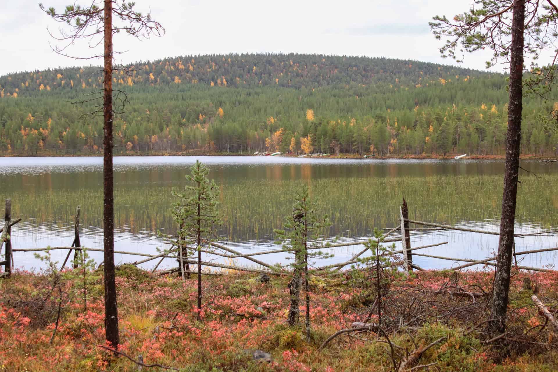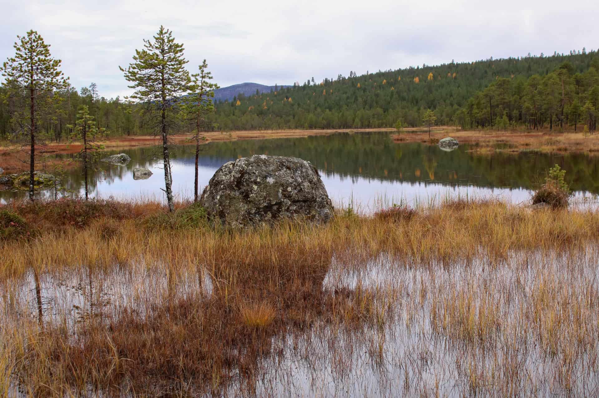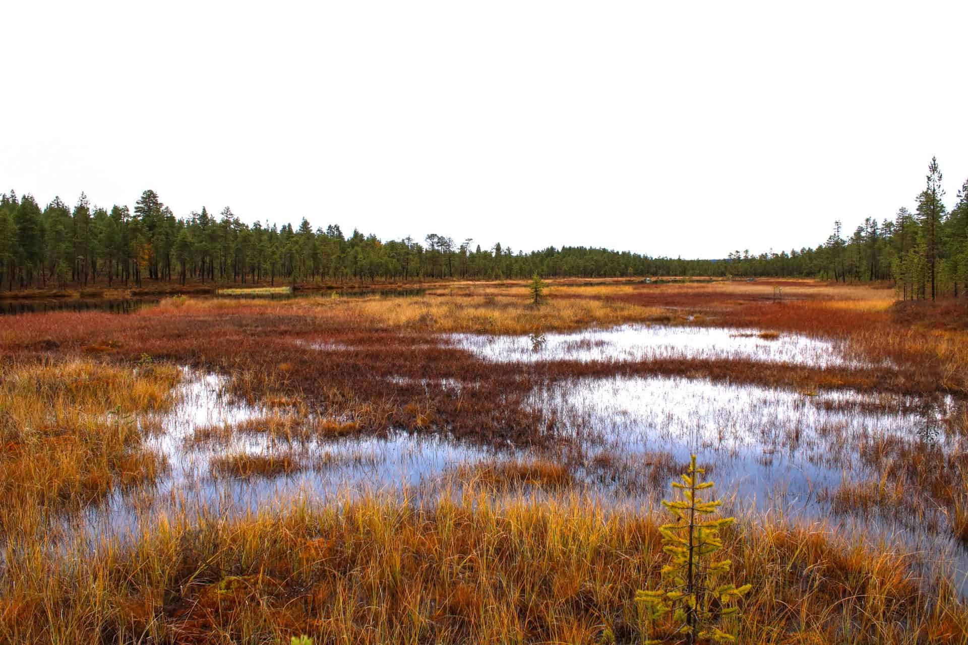 Nangujärven lounaisrannan karuja metsiä, soita sekä noin hehtaarin kokoinen saari.