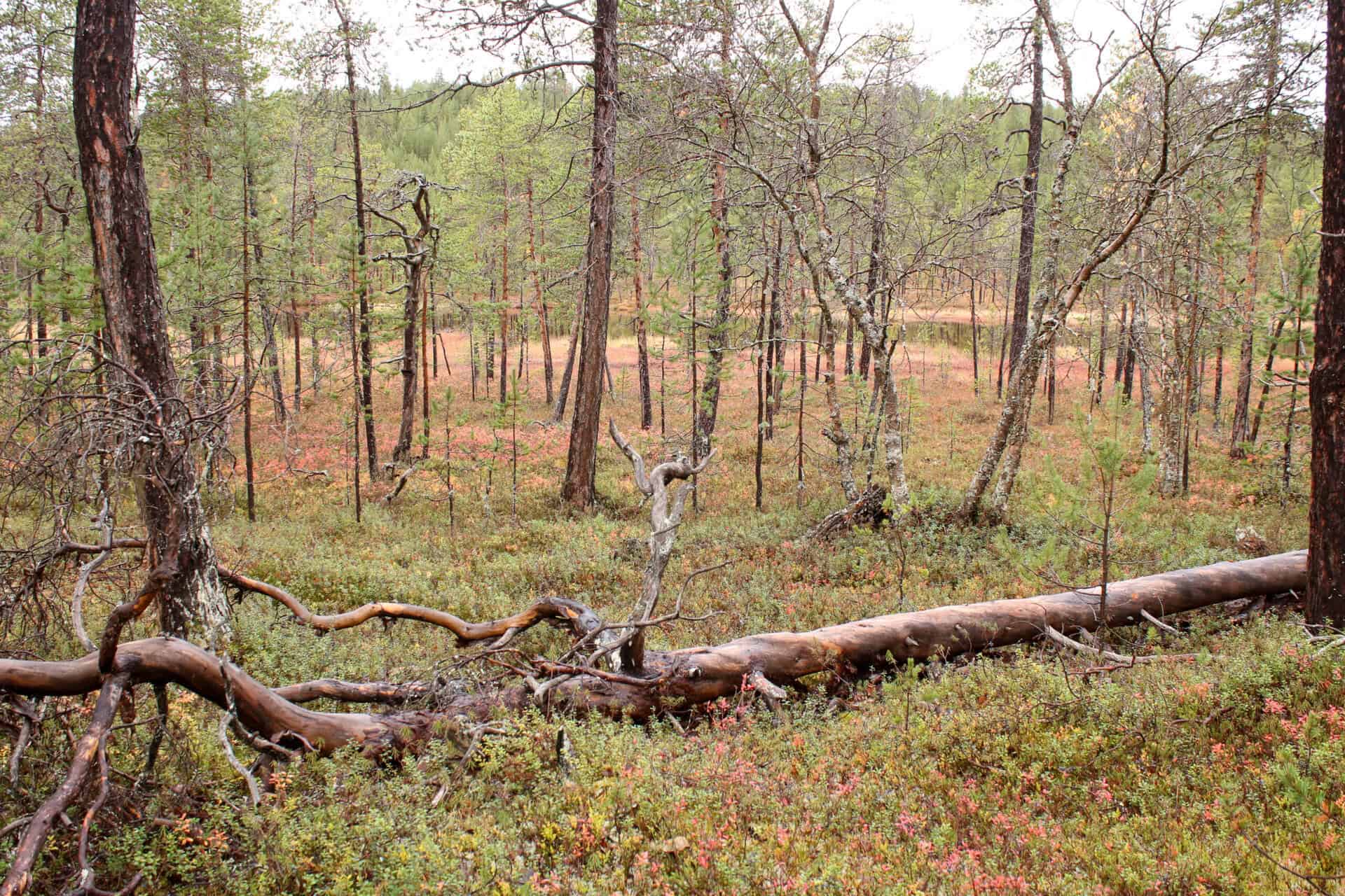 Alueen metsät ovat pääosin kuivaa puolukkatyypin kangasta ja suot rämeitä. Jonkin verran pinta-alasta on myös nevaa ja rantaluhtaa. Maassa makaa järeitä keloja, jotka osoittavat, että paikalla on aikoinaan humissut suuriakin puita. Alueen läpi kulkeneen trombin jäljiltä osalla alueesta on jätetty kaatuneet puut paikalleen, mikä on suojelumielessä hyvä asia. Osa kaatuneista puista on otettu talteen omaan käyttöön. Varsinaisia metsänhoitotoimia metsässä on viimeksi tehty vuosikymmeniä sitten.