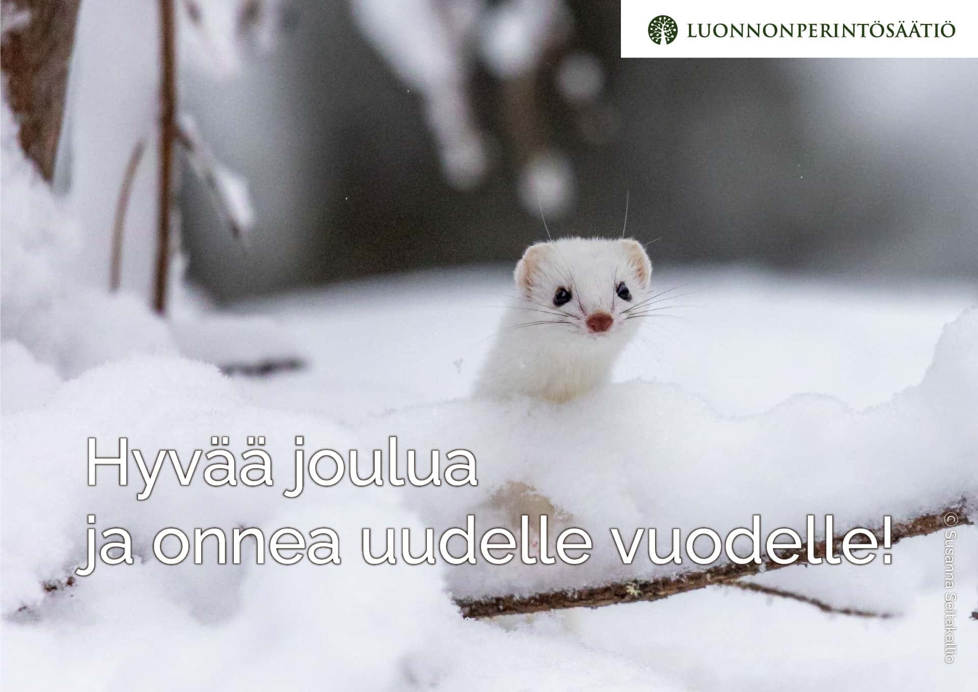 Muista läheisiä joulunaikana Luonnonperintösäätiön hienolla sähköisellä joulukortilla ja tue samalla arvokasta luonnonsuojelutyötä! Lahjoittamalla vähintään 10 euroa suojelutyöhön saat käyttöösi sähköisen joulukortin.